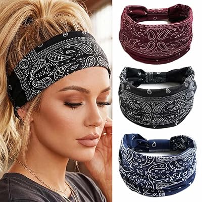 CAKURE Boho Wide Headbands Knotted Head Wraps African Head Scarf Motorcycle Hair Accessories for Women and Girls Pack of 3 Set-1