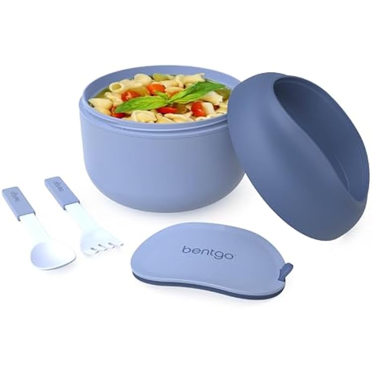 Bentgo Bowl - Insulated Leak-Resistant Bowl with Snack Compartment, Collapsible Utensils and Improved Easy-Grip Design for On-the-Go - Holds Soup, Rice, Cereal & More - BPA-Free, 21.2 oz Slate